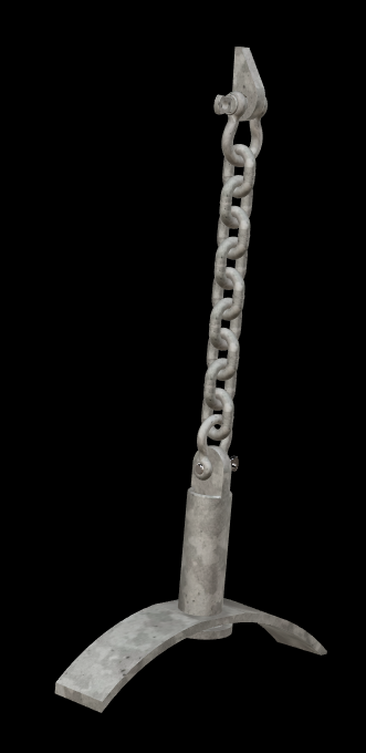 The system is made from strong steel and built for tough marine use. It comes standard with a 1/2" shackle weld-on tab made from 1/2" steel. It also includes 24 inches of 1/2" chain.